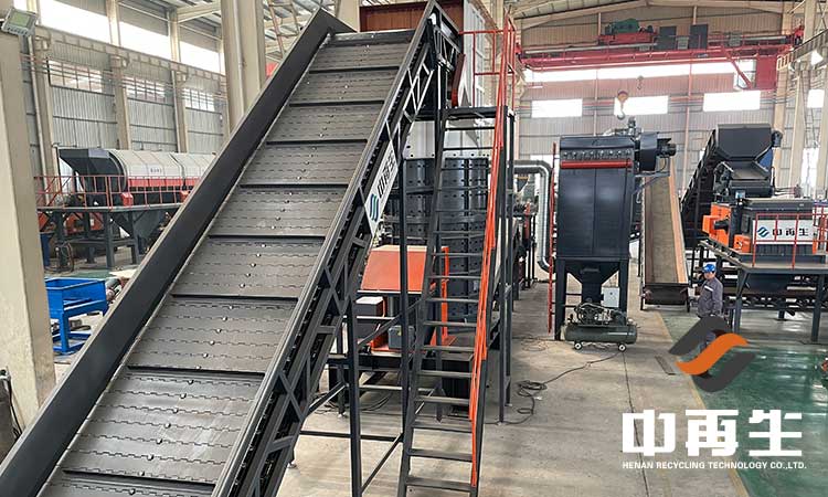 汽車座椅破碎分選線主要是針對汽車座椅進行破碎加工的,經(jīng)過加工處理后的物料規(guī)格統(tǒng)一、密度小、便于儲存運輸。全套設備的作業(yè)流程主要是由前端的撕碎機對汽車座椅進行粗碎處理。然后再經(jīng)過破碎機對物料進行撕扯、捶打、擠壓以達到細碎的效果。最后通過分選設備分離出金屬和非金屬物料。在破碎機后端配備有風力設備和除塵設備,對作業(yè)中出現(xiàn)的粉塵進行收集,防治粉塵污染。